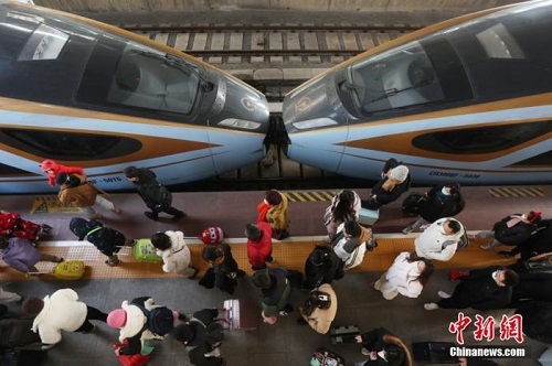 1月27日,旅客在南京火车站出行。当日是春节假期最后一天,长三角铁路迎来返程客流。 中新社记者 泱波 摄