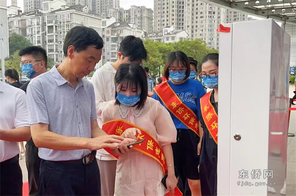 东侨网消息(吴夏冰)6月30日,宁德市生态环境局东侨分局生态防疫驿站启动仪式在东侨行政服务中心举行,来自东侨开发区党工委、管委会、市生态环境局、福建省环三都澳区域绿色发展基金会、市生态环境局东侨分局、新能源科技有限公司、宁德时代新能源科技股份有限公司等单位负责人、企业代表共同为自助公益口罩机揭幕。