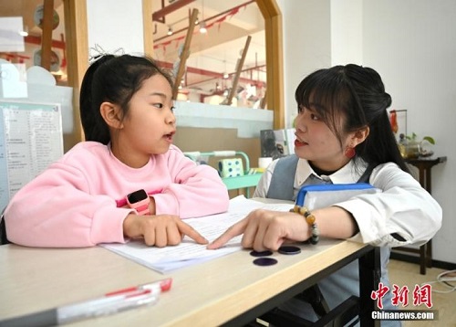 近日,在成都一所社区教育学校,七八名小学生体验了一节不同的英语课:在“90后”台湾老师林姿佑指导下,先观看动画片了解“郑人买履”的故事梗概,再与老师配合、用中英双语完成这则成语故事的讲述,最后通过表演加以巩固。