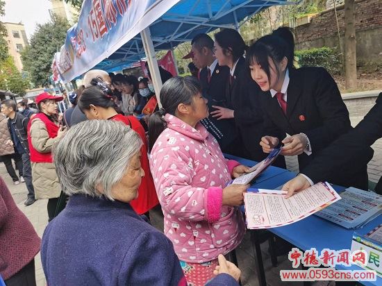 活动现场,法院干警通过向来往群众发放精心制作的宣传资料、播放普法小视频、提供现场咨询服务等多种方式,宣传消费维权法律知识,并现场提醒老年朋友们,在购买商品或者接受服务时要文明消费,防范网络传销,提防养老诈骗。