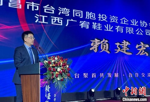 3月30日,南昌市台协换届仪式上,南昌市台协第九届会长赖建宏发言。 卢梦梦 摄