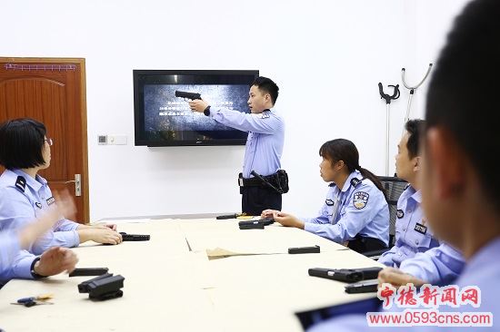 在室内,法警大队政委陈素超传达了《公安机关公务用枪管理“三必须”“五严禁”》的通知,增强全队法警安全管理、规范使用枪支的意识;教练员兰阳健结合92改式手枪技能视频学习光盘进行讲解,从“92改式手枪”的性能、分解结合要领和使用注意事项三个方面进行了细致讲解,对容易出错的地方进行了重点说明。