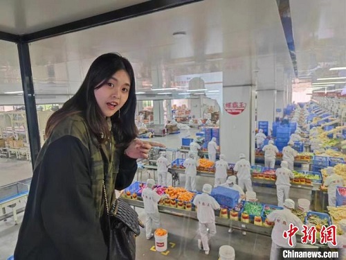 2023年4月,蔡如瑜在广西拍摄很受台湾青年欢迎的螺蛳粉生产工厂。 受访者供图