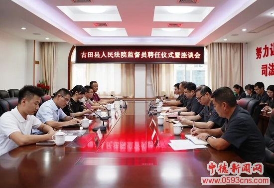 宁德新闻网6月16日电 (游锦玲 蔡凌超)为进一步拓宽监督渠道,搭建群众沟通桥梁,主动接受社会各界监督,推进党风廉政和司法公信建设,6月13日,古田法院举行人民法院监督员聘任仪式暨座谈会,党组书记、院长游翔主持会议、新聘任人民法院监督员参会。