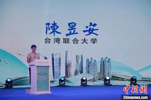 6日晚,来自台湾联合大学的学生陈昱安作为台湾学生代表发言。主办方供图