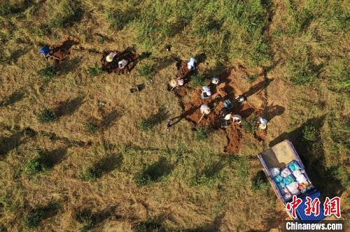 中新网桂阳9月14日电 (鲁毅 曹诗灏 欧阳宇轩 廖诗卉)初秋时节,湖南桂阳县太和镇湾塘村千亩黄精种植基地,村民们挥舞着锄头、耙子,采挖几年前种下的“宝贝疙瘩”——黄精。这批黄精已生长超过4年,当下正迎来丰收采挖季。
