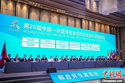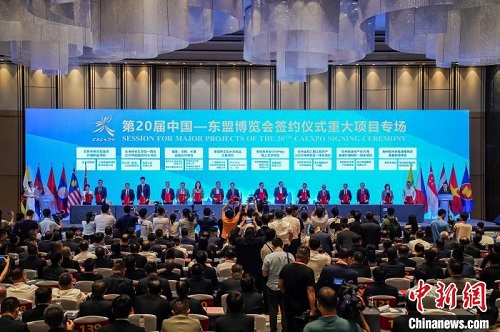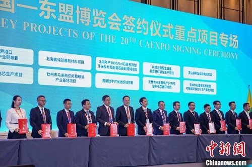 中新网南宁9月18日电(陈冠言)9月17日,由中国—东盟博览会组委会主办,广西壮族自治区人民政府承办的第20届中国—东盟博览会(以下简称东博会)签约仪式在广西南宁举行,现场集中签约项目184个,其中投资合作项目170个、国际贸易和“走出去”国外投资项目14个。