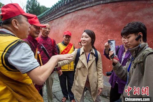 9月21日,参访团记者在武当山采访。张倩龙 摄