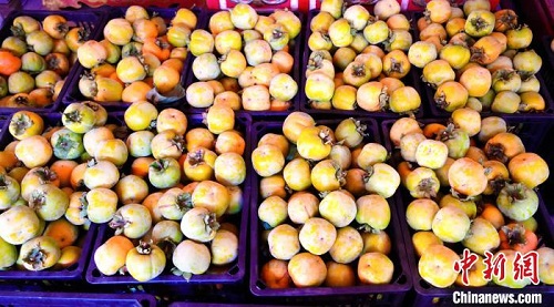 中新网福建永定9月27日电 (熊川 黄秋萍)又是一年丰收季,好“柿”成双满枝头。26日,福建省龙岩市永定区高头镇大岭下村第七届柿子丰收节火热开启。