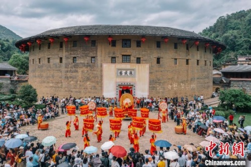 福建土楼永定景区精心准备了大鼓凉伞、提线木偶、绝艺表演、音乐表演,为游客增添新乐趣。福建土楼永定景区 供图