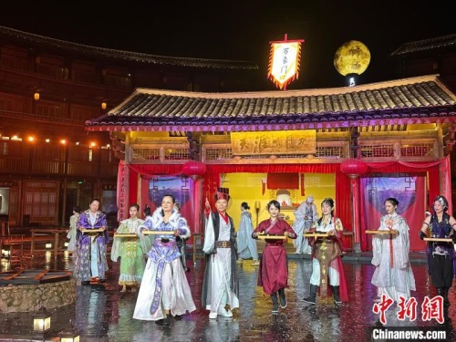福建土楼永定景区内沉浸式夜游项目、“天涯明月刀”项目等一系列新的文旅业态受游客欢迎。福建土楼永定景区 供图