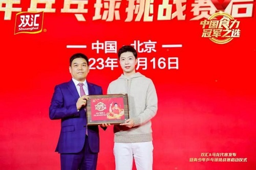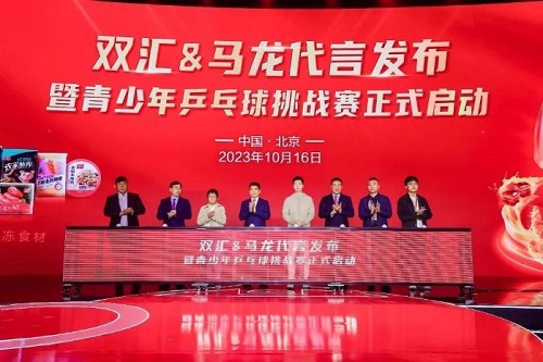 10月16日下午,马龙代言双汇发布会暨青少年乒乓球挑战赛启动仪式在北京中国电影导演中心举行。来自消费者、销售商、媒体等各界嘉宾代表出席活动,在他们的共同见证下,双汇发展总裁马相杰正式宣布马龙为双汇品牌代言人。