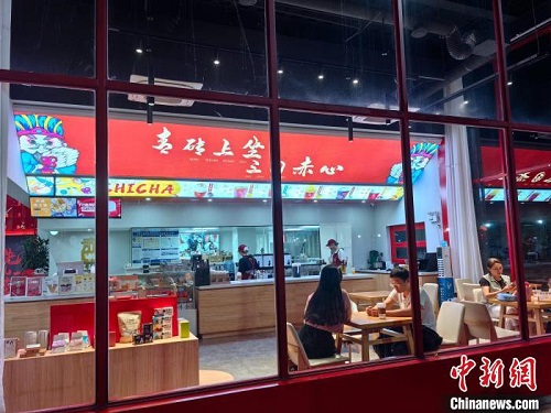 24日晚8时,记者走进位于赤壁市人民广场的一家“赤茶”店,消费者络绎不绝。店长刘梦瑶介绍,该店以经营青砖奶茶、纯茶、糕点为主,特别受中青年顾客青睐。类似的“青砖奶茶店”,赤壁目前已有十余家,生意都还不错。