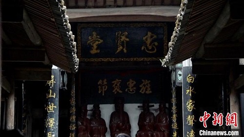 10月25日,台湾文化界人士走进位于福建省武夷山市的兴贤老街,游览忠贤堂。中新社记者 张杨彬 摄