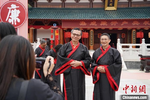 “拱手、高揖、拜......”随着司礼官的朗声指引,台胞们身着汉服,在悠长的钟声中完成了庄严肃穆的仪式。“一瞬间似有穿越时空之感。”台湾文创媒体艺术推广协会理事长刘盈希说。回忆儿时经历,她说自己从小就明白知礼数、孝双亲的道理,“这仿佛是中华儿女一种共有的基因,是潜移默化地在文化氛围中涵养出来的。”