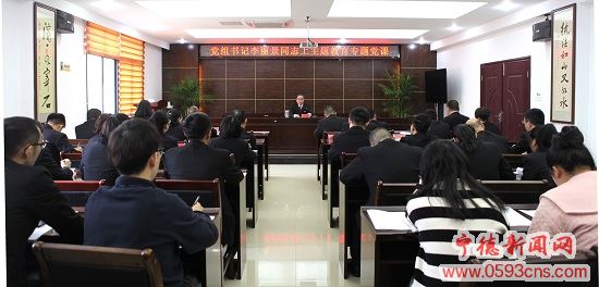 近日,为引导全院干警不断提高政治判断力、政治领悟力、政治执行力,筑牢政治忠诚,柘荣法院党组书记、院长李丽景以“坚持人民至上 践行司法为民——以主题教育成效助推柘荣法院工作高质量发展”为题,上了一堂主题教育专题党课。(文/图 林霁欣)