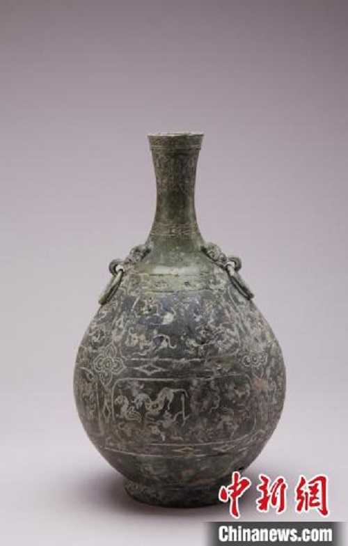 嵌错狩猎纹铜壶。宣汉县委宣传部供图