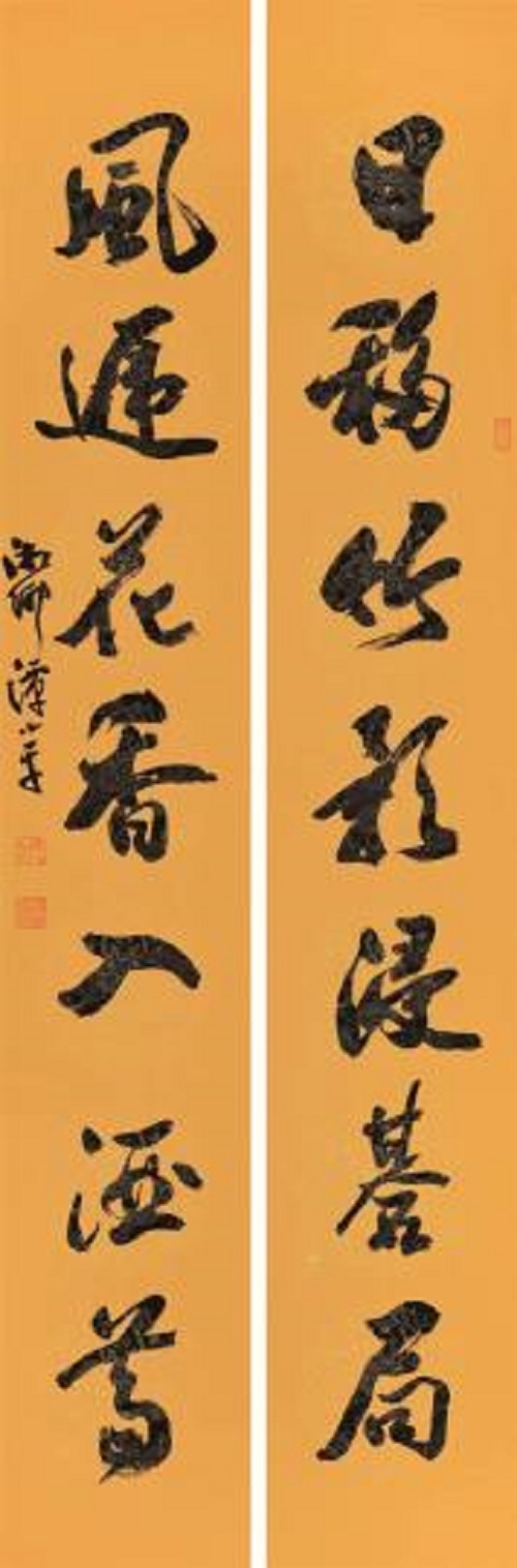谭小平行书作品《日移风迟七言联》。受访者 供图