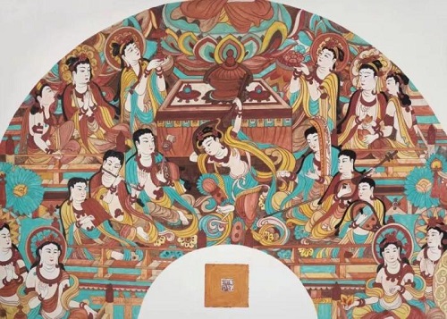艺术的道路永无止境。2022年暑期,谭小平利用休假时间跟随天津美术学院牵头的一个项目到敦煌研习壁画。随着对线描造型、材料分析、色彩运用、画面处理等系统地深入探究,谭小平对敦煌壁画的认识和理解不断提升,成为该项目中产出作品数量最多的一位。