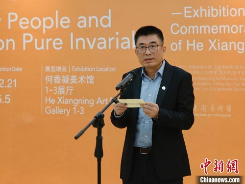 12月21日,“愿年年人月双清——纪念何香凝诞辰145周年艺术精品展”在何香凝美术馆开幕。图为何香凝美术馆馆长蔡显良致辞。何香凝美术馆供图