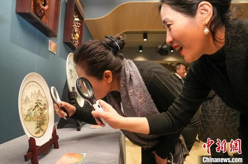 中新网广州12月25日电 (记者 许青青)30余位粤港工艺美术大师近40件(套),涵盖端砚、广绣、手拉壶、彩瓷、玉雕等极具岭南特色的工艺美术精品的“珠光璀璨熠香江——广东工艺美术精品展”正在香港集古斋画廊举行。