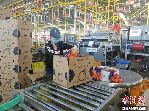 中新网南宁1月17日电(张广权 颜彦)1月16日,20吨沃柑在广西南宁市西乡塘区坛洛镇分拣装车,发往越南胡志明市。此前一天,西乡塘区还首发20吨沃柑去往加拿大,首次闯入北美市场。