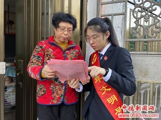 1月17日,福鼎法院太姥山青年文明号前往太姥山镇玉池社区开展“典入人心,与法同行”为主题的普法宣传活动。活动中,干警向居民发放《中华人民共和国民法典》宣传资料50余份,并结合实际案例向居民普及婚姻家庭编等与居民生活息息相关法律知识,进一步扩大了民法典的宣传覆盖面和知晓率,增强辖区群众的法治观念和维权意识。(文/图 谢遥遥)